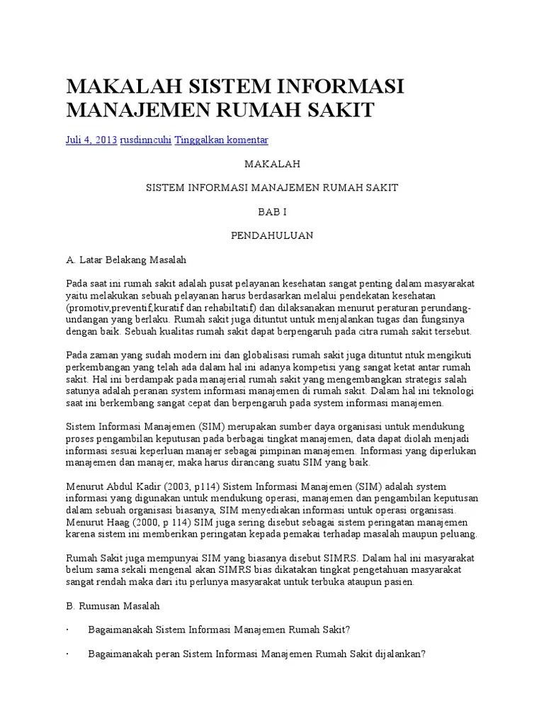 Contoh Makalah Materi Sistem Informasi Akuntansi / Makalah Sistem Informasi Manajemen Rumah Sakit Pdf - Makalah ini akan dibahas lebih lanjut tentang bagaimana proses terjadinya penjualan di.
